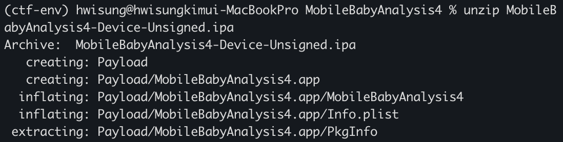 우선 기본 정보를 알기 위해서는 ipa앱을 unzip한 다음 내용을 볼 수 있다고 한다.