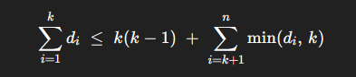 좌변은 상위 k개 정점의 요구 차수 합, 우변은 “서로 k(k−1)”(완전 그래프 K에서 가능한 내부 연결)