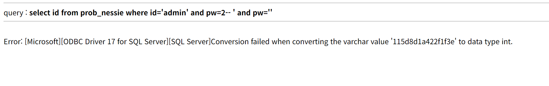$query = "select pw from prob_nessie where id='admin'";