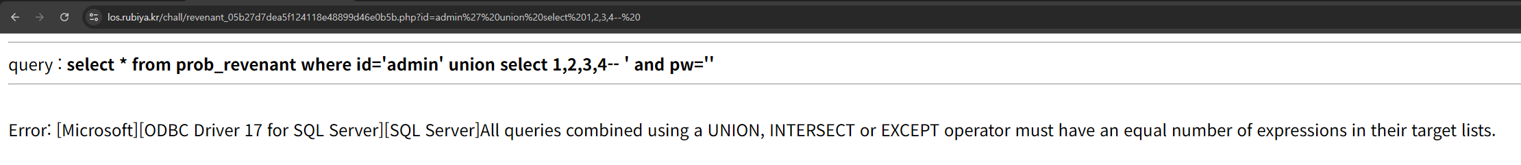 if ($result['4'] === $_GET['pw']) solve("revenant"); // you have to pwn 5th column