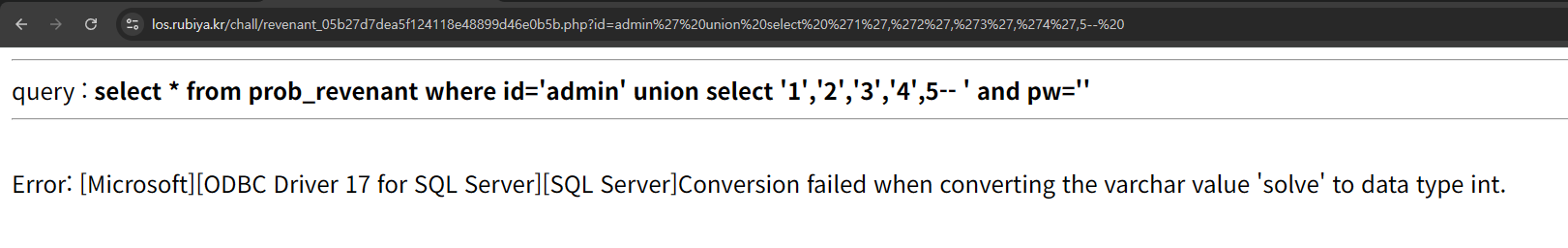처음엔 blind sqli로 접근하려고 했는데 몇 번 시도해보다 보니 오류 정보를 상세하게 보여준다.